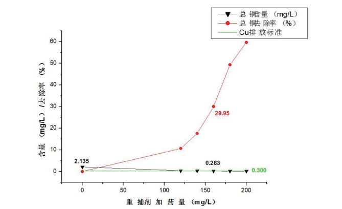 解決方案:使用我司重金屬捕捉劑03型加藥到160PPM之后總銅從2.14降到0.28ppm,達到要求持續加總銅可以降低至0.16ppm以下。
